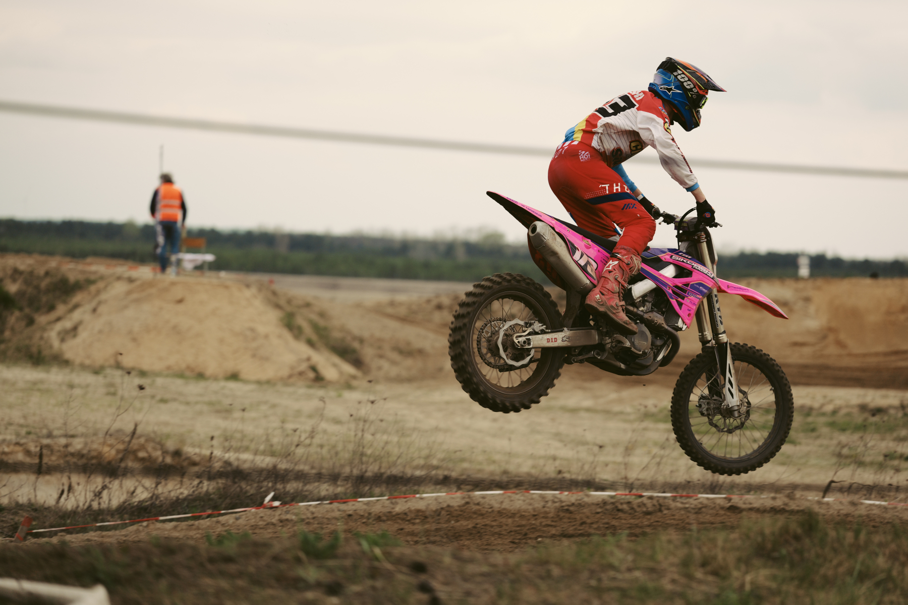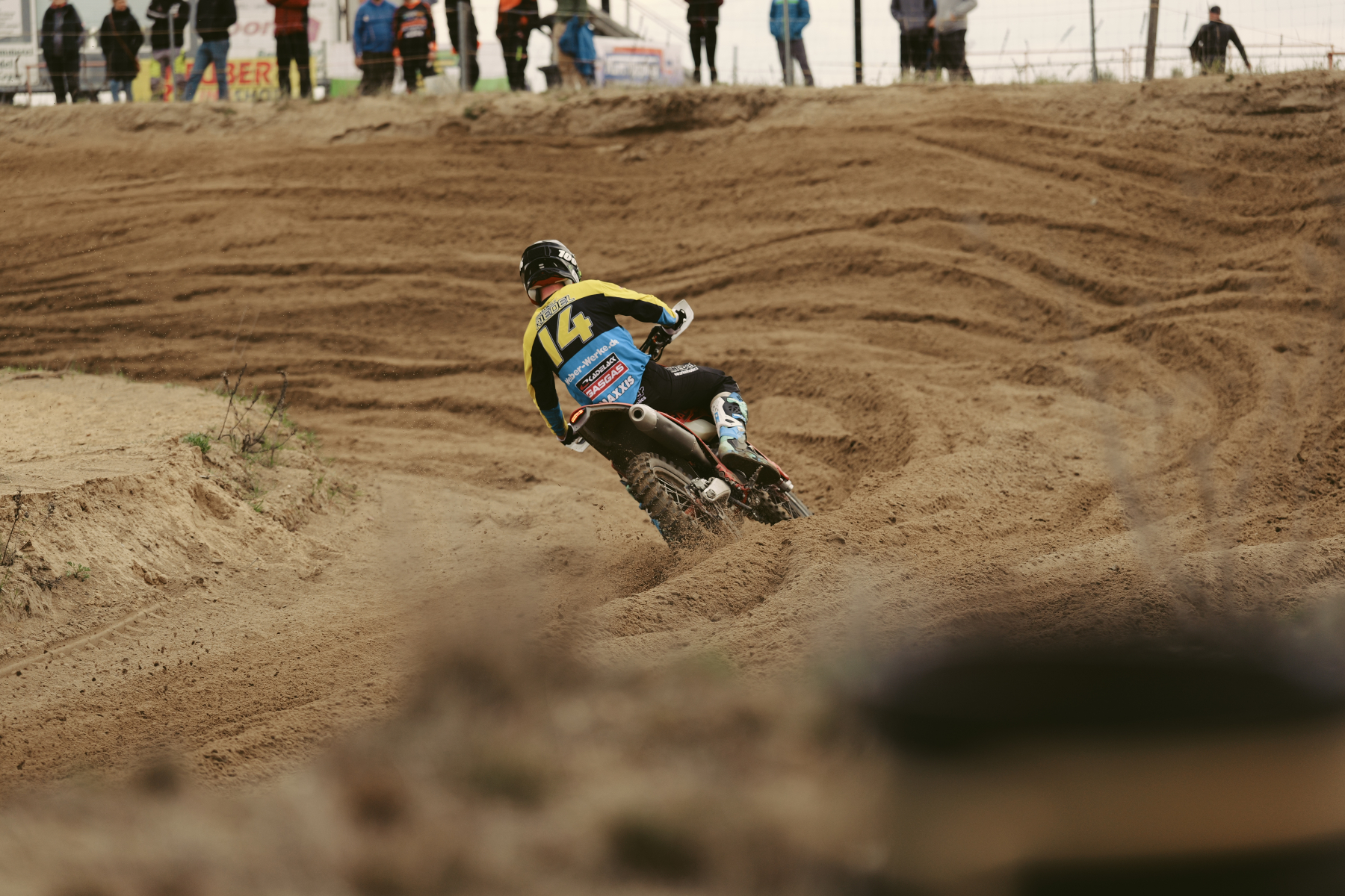 In der 85er-Klasse schien John Brandin in einer eigenen Welt zu fahren. Während das restliche Feld im tiefen, nassen Sand mit der Traktion und der Sicht kämpfte, pflügte Brandin förmlich durch die Jämlitzer Erde. Er dominierte beide Läufe mit einer Souveränität, die sprachlos machte. Trotz des peitschenden Regens behielt er die volle Kontrolle über seine Maschine und sicherte sich zwei überlegene Laufsiege – eine absolute Machtdemonstration im schweren Geläuf.